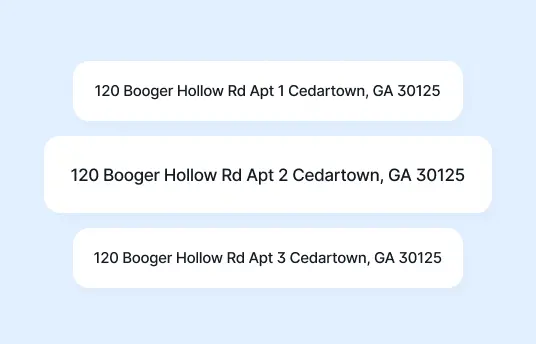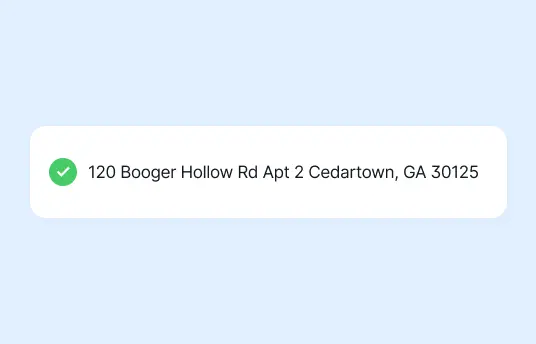 Receive the correctly formatted USA address data output and keep your database clean by providing your customers with only verified addresses to choose from.